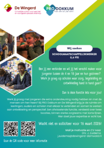 Ben jij een betrokken schoolmaatschappelijk werker die graag werkt met jongeren en hun ouders die extra ondersteuning nodig hebben? Wil je jouw expertise inzetten binnen twee onderwijsomgevingen waar zorg, begeleiding en ontwikkeling centraal staan? Dan zijn wij op zoek naar jou.
